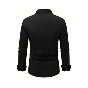 Men's Shirt Business Button Down Shirt Summer Solid Color Long Sleeve Lapel Vacation Shirt Fashion Temperament Casual Tops